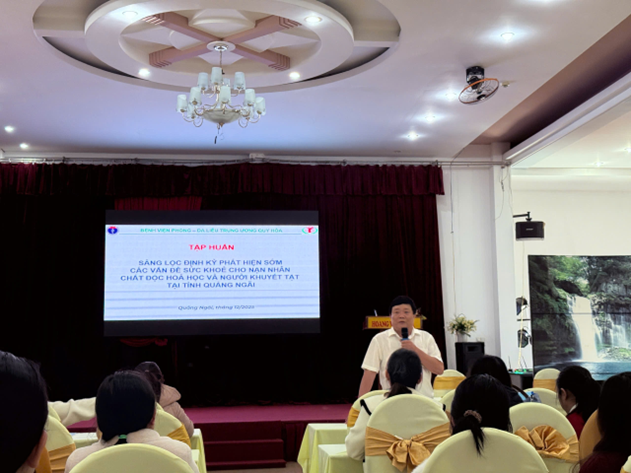 Ngày 11/12/2025, Bệnh viện Phong – Da liễu Trung ương Quy Hòa đã phối hợp với Sở Y tế tỉnh Quảng Ngãi tổ chức thành công lớp tập huấn sàng lọc định kỳ, nhằm phát hiện sớm các vấn đề sức khỏe cho nạn nhân chất độc hóa học và người khuyết tật trên địa bàn.